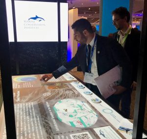 GLORES大使塞巴斯蒂安·尼科尔斯在2017年我们的海洋上展示了我们的交互式海洋保护区表。