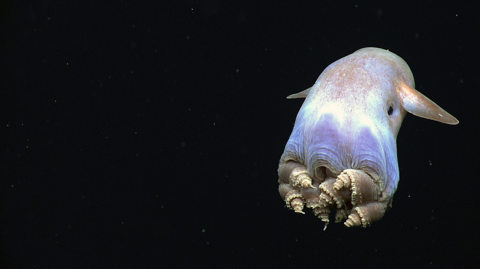 另一个常见的深海章鱼是小飞象章鱼(Grimpoteuthis)。小飞象章鱼雨伞章鱼的家人(Opisthoteuthidae),它的特点是独特的皮肤连接网络触角。他们使用这个皮肤作为一种防御机制,扩大出现时更大的威胁。小飞象章鱼分为cirrate章鱼由于鳍的存在。在他们的情况下,鳍位于略高于他们的眼睛,像著名的迪斯尼人物的软盘耳朵小飞象大象和引起他们共同的名字。像傻瓜一样,他们可以“飞”通过水柱通过慢慢地拍打它们的鳍。虽然这些深海生物通常观察到浮动米底,他们用海底休息,喂,防御。虽然大多数小飞象章鱼相对较小(8 - 12英寸长),他们已经达到了记录大小六英尺,在13磅体重。这些深海居民通常发现惊人的3000 - 7000米!
