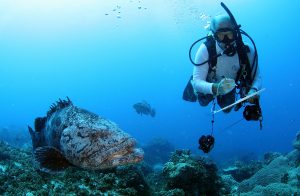 马铃薯鳕鱼(Epinephelus tukula)亚环礁,塞舌尔MPA南部新创建的一部分。照片:马努圣费利克斯