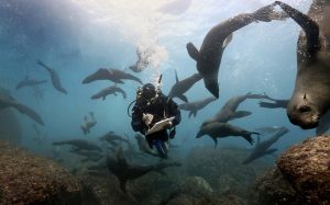 流行的胡安费尔南德斯毛皮海豹(Arctocephalus philippii)鲁宾逊岛,新创建的胡安费尔南德斯群岛海洋公园的一部分(262000平方公里)。照片:马努圣费利克斯
