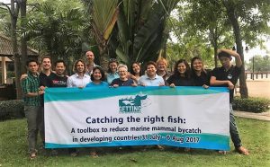 海因斯博士和12的女性来自6个国家的科学家在研究巡航达叻省沿海鲸类,泰国。