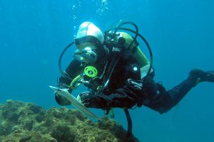 奥尔塔·科斯塔博士进行调查,以评估禁渔区内的鱼类种群和目标无脊椎动物。有关此工作的示例,请参见Horta e Costa等人,2013。图片来源:Vasco Ferreira / Biomares Project