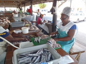 巴巴多斯当地鱼市上卖鱼的妇女。图片:P. McConney, 2012
