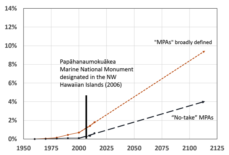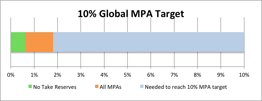 无论是好是坏,保护社区和资源管理当局经常衡量他们的进步的指标的数量和地理覆盖海洋保护区(海洋保护区)。事实上,大量的国际协议,如生物多样性公约的2011年爱知目标生物雷竞技网站多样性设置一个酒吧在10%覆盖率的关键保护海洋保护区的海洋在国家司法管辖区和生物地理的区域内。一些科学分析,然而,表明有20 - 30%的海洋地区储备必要的最低保护海洋生物。尽管有这样的警告,现在我们看一个非常缓慢的比赛来实现某种形式的保护区域10%的海洋地区(以现在的速度,这可能让我们直到2100年)。