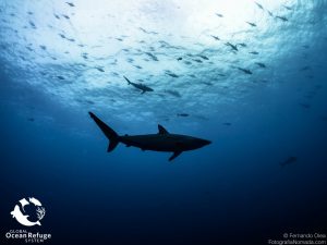 一条鲨鱼游了过来马尔佩洛动植物保护区,因其对丰富海洋生态系统的全面保护而获得GLORES奖。照片:费尔南多·齐墩果