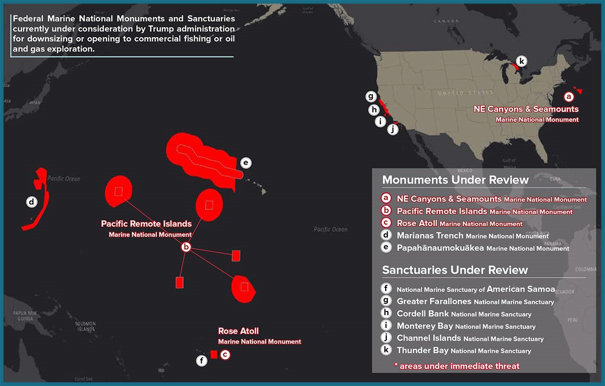 正在审查的美国海洋国家纪念碑和保护区。来源:雷竞技苹果版下载MPAtlas.org