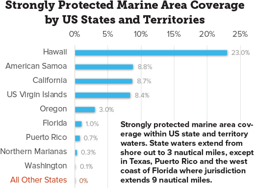 海洋保护图集(雷竞技苹果版下载MPAtlas.org)团队发布了2017年美国海洋保护水平的年度评估。他们更新SeaStates我们的报告每年一次,以确保它是美国沿海各州和领土水域中海洋保护区(MPAs)最严格、定量和专题的核算。首次出版于2013年报告是衡量和评估美国在有效海洋保护方面取得进展的工具。