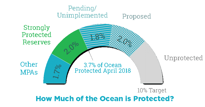 在强大的海洋保护区保护海洋生态系统免受人类活动的影响,是确保我们美丽的蓝色星球生存和繁荣的有效方法。在不到20年的时间里,我们的海洋保护面积从接近零上升到略低于4%,另有3.8%的海洋建议受到保护或即将受到保护(见下面海洋保护计划的进展图表)。雷竞技苹果版下载面积近1200万平方英尺。正如我们的董事会成员、杰出的海洋生物学家西尔维亚·厄尔博士所说,“我们在未来10年的行动将决定未来1万年的海洋状态。”希望十年后,我们能欢呼强有力的海洋保护措施,为后代拯救海洋生物多样性。雷竞技网站
