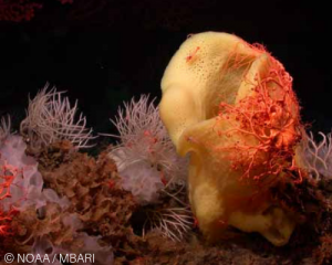 海绵和篮子恒星戴维森海底山。照片:NOAA / MBARI