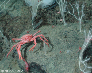 莱夫White-branched海绵,白色海绵、螃蟹和虾戴维森海底山。照片:NOAA / MBARI