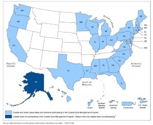 沿海州参与NOAA的国家海岸带管理计划。来源:高