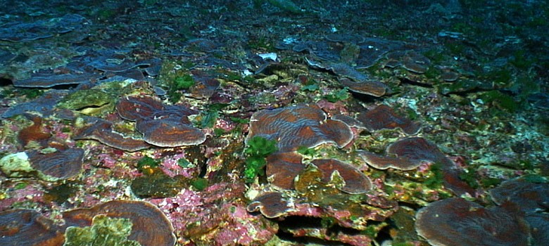 我们终于到了天气和部署猎鹰ROV(图1)轮内的主脊脊栖息地面积特别关注(一个特殊的名称在墨西哥湾的渔业管理委员会)。条件不理想;摆布我们当前和风力,但我们看到一些大赤点石斑鱼发掘,每个都有服务员狮子鱼很不幸,扇形绿藻,只有生长在滑轮脊,和大型平面板的珊瑚这些mesophotic珊瑚礁的特征。成长为一个盘子而不是博得允许珊瑚利用有限的光(图2)。在年底前我们冒险潜入领土,没有研究,并发现了一个巨大的盆地(可能是一个赤点石斑鱼开挖)与数以百计的微小的鱼类以及大赤点石斑鱼,流氓和黑色的石斑鱼。此时当前把我们从礁和暗示的潜水。
