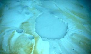 陨石坑的形成卤水池在深海。照片:Lophelia二世2010年远征,NOAA-OER / BOEMRE